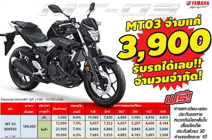 YAMAHA MT-03 ตารางผ่อน