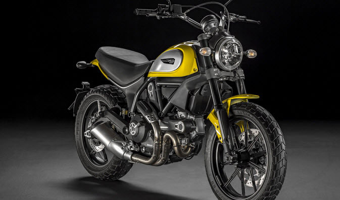 Ducati Scrambler เป็นสองล้อแนวย้อนยุค หวังเจาะกลุ่มนักบิดที่ต้องการบิ๊กไบค์ระดับเริ่มต้นหรือ Entry level ใช้พื้นฐานเครื่องยนต์เดียวกับรุ่น มอนสเตอร์ 796 แบบ L-Twin 2สูบ ขนาด 803 ซีซี. ระบายความร้อนด้วยอากาศ แต่ปรับจูนความแรงลดลง โดยให้กำลังสูงสุด 75 แรงม้า ที่ 8,250 รอบต่อนาที แรงบิดสูงสุด 68 นิวตัน-เมตร ที่ 5,750 รอบต่อนาที ส่งกำลังด้วยชุดเกียร์ 6 สปีด พร้อมติดตั้งเบรก ABS หน้า-หลัง และช่อง USB สำหรับชาร์จเครื่องมืออิเล็กทรอนิกส์ มาให้เป็นอุปกรณ์มาตรฐานในทุกรุ่น แบ่งเป็น 4 รุ่นย่อย Icon, Urban Enduro, Full Throttle และ Classic สนนราคา 8,495-9,995 เหรียญสหรัฐฯ
