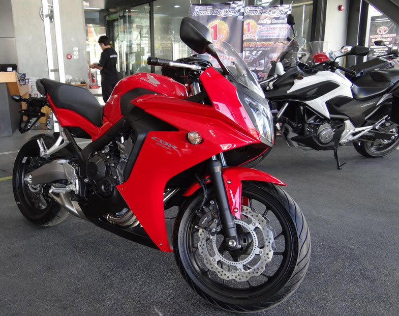 Honda CBR650F บิ๊กไบค์สไตล์สปอร์ตฟูลแฟริ่งราคา 300,000 บาท เครื่องยนต์ 4 สูบ ขนาด 649 ซีซี DOHC 16 วาล์ว ระบายความร้อนด้วยน้ำ ส่งกำลังด้วยเกียร์ 6 สปีด จ่ายน้ำมันเชื้อเพลิงด้วยระบบหัวฉีด PGM-FI ให้กำลังสูงสุด 87 แรงม้าที่ 11,000 รอบ/นาที แรงบิดสูงสุด 63 นิวตันเมตร ที่ 8,000 รอบ/นาที ไปได้ไกลด้วยถังน้ำมันขนาดใหญ่จุได้ 17.3 ลิตร