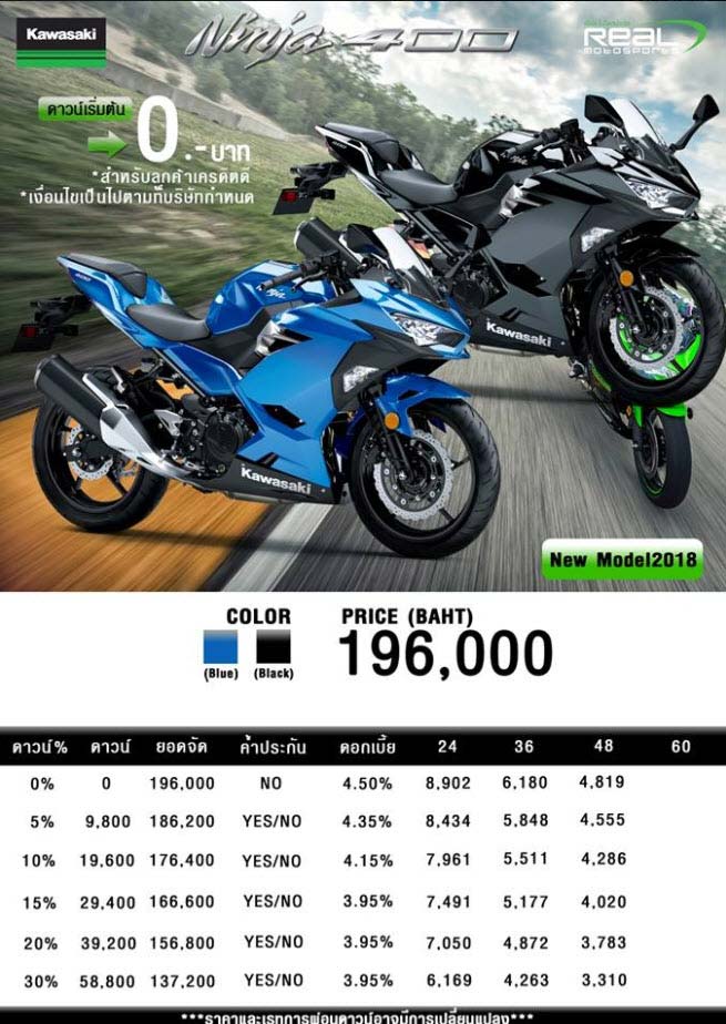 Kawasaki Ninja 400  รุ่น ราคา 196,000 บาท