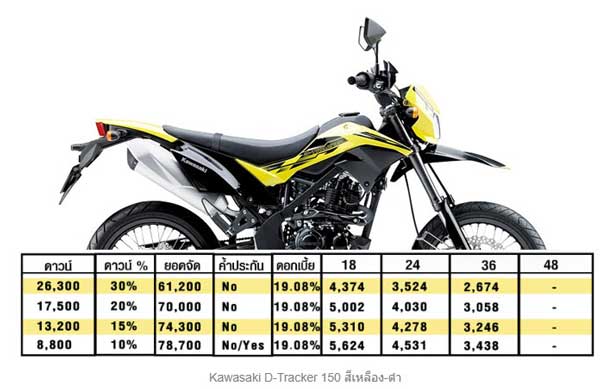 ตาราง ราคาผ่อนดาวน์ D-Tracker 150 ใหม่