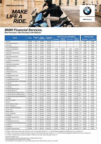 ราคารถมอเตอร์ไซค์ BMW รุ่นต่างๆ