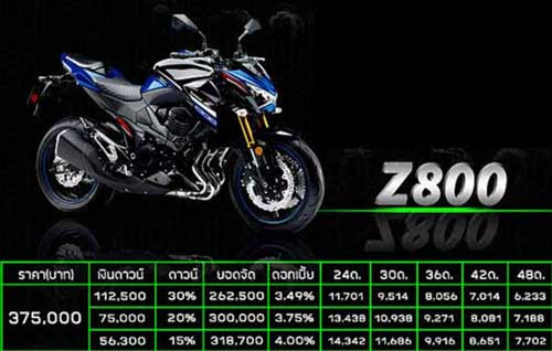 - kawasaki z800ผ่อน 24 เดือน จ่าย 14,342 บาทต่อเดือน