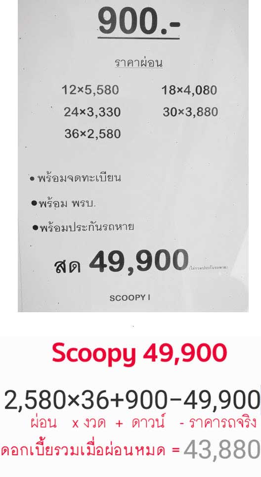 รวมค่ารถกับดอกเบี้ยทั้งหมด 93,780 (แต่ราคารถเงินสดแค่ 49,900)