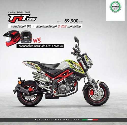 Benelli TNT 135 ราคา 59,900 บาท ดาวน์0% ผ่อน 2,459บาทดต่อเดือน ฟรีหมวกกันน๊อค x1r