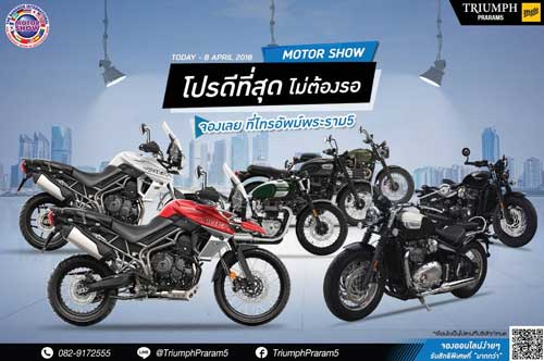 โปรดีที่สุด ไม่ต้องรอ!! โปรโมชั่นเดียวกันกับ MOTOR SHOW 2018 จัดหนักจัดเต็มรถจักรยานยนต์ TRIUMPH พร้อมรับสิทธิพิเศษนี้ได้ก่อนใคร จองเลย ที่ “ไทรอัมพ์ พระราม 5”